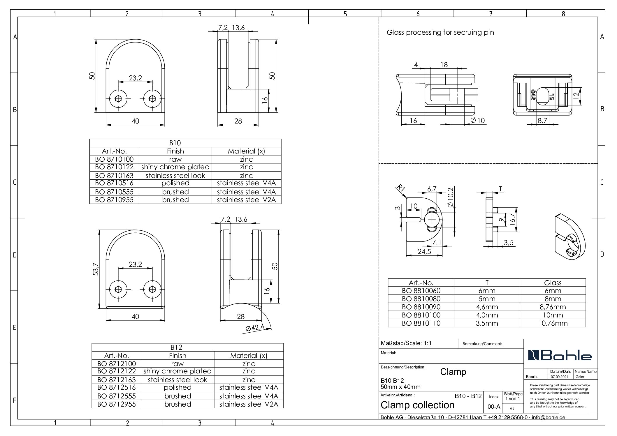 Les pattes de fixation sont le lien indispensable pour les remplissages en verre dans les garde-corps en acier inoxydable. Avec de nombreuses variantes de taille, de forme et de couleur, Bohle propose un vaste assortiment pour tous les goûts et toutes les situations de montage. Avec seulement quatre fixations par verre, il est possible de réaliser des portées allant jusqu’à deux mètres, ainsi que des épaisseurs de verre de 6 à 21,52 mm. Les inserts en caoutchouc, disponibles séparément, offrent des possibilités de combinaison flexibles entre la fixation et le verre. Grâce aux différents raccords de tube, les pattes de fixation Bohle peuvent être montées sur tous les poteaux de garde-corps courants (tube carré, tube rond Ø 42,4 mm et tube rond Ø 48,3 mm) à l’intérieur comme à l’extérieur.