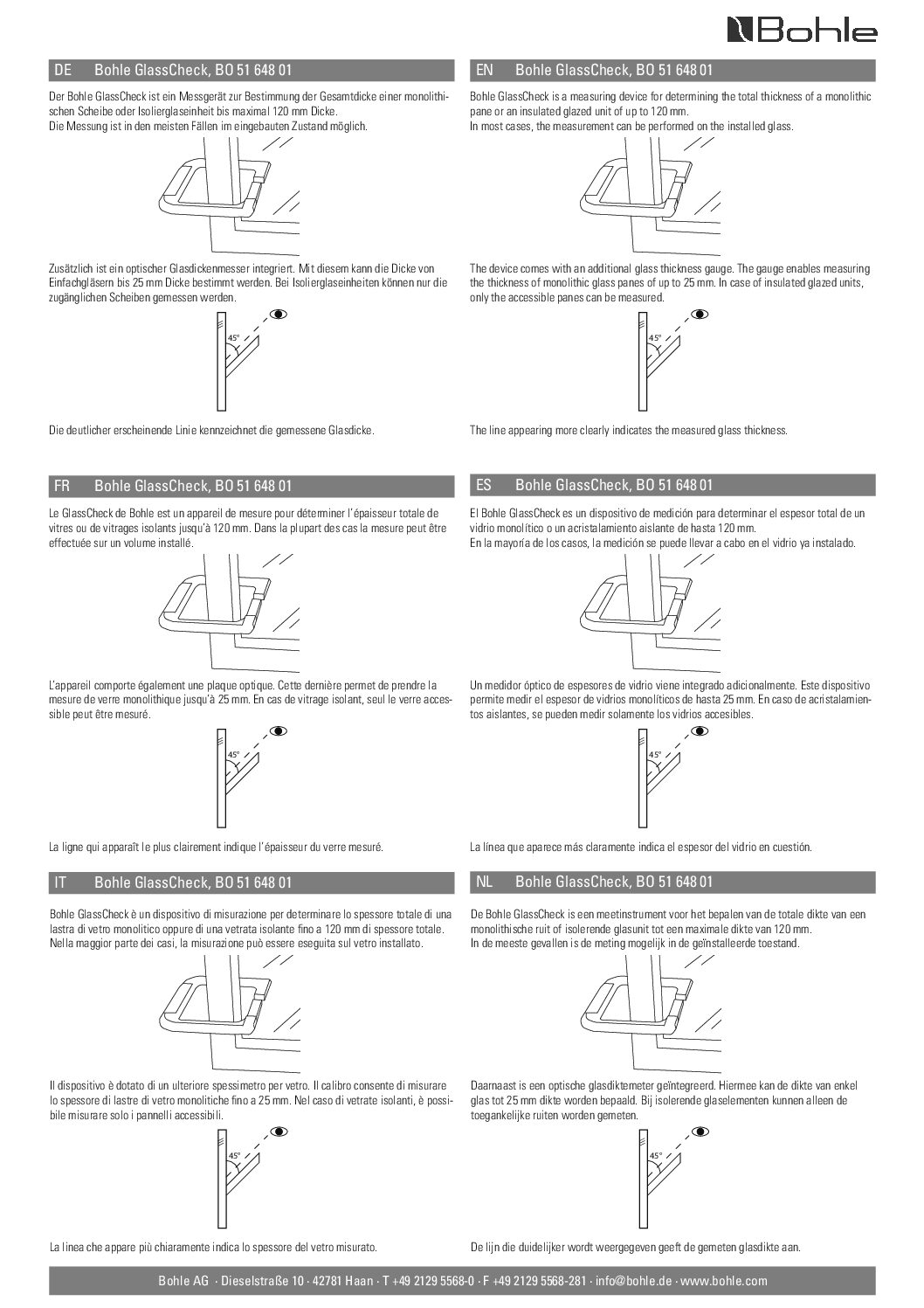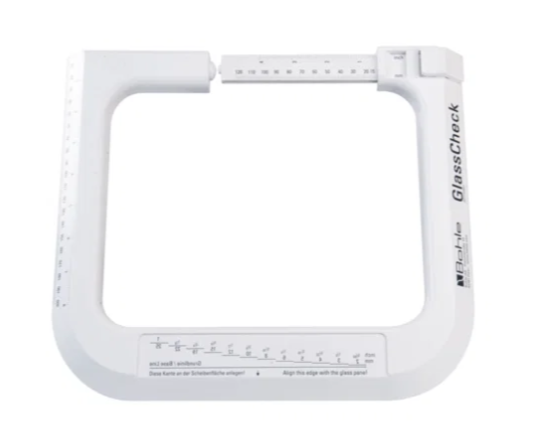 Le GlassCheck convient pour mesurer l’épaisseur totale des vitres ou des vitrages isolants lorsqu’ils sont installés. Il est possible de mesurer des superstructures jusqu’à 120 mm. Le mesureur optique d’épaisseur de verre est intégré. Il est ainsi possible de lire l’épaisseur du verre de chaque vitre (2 à 25 mm).