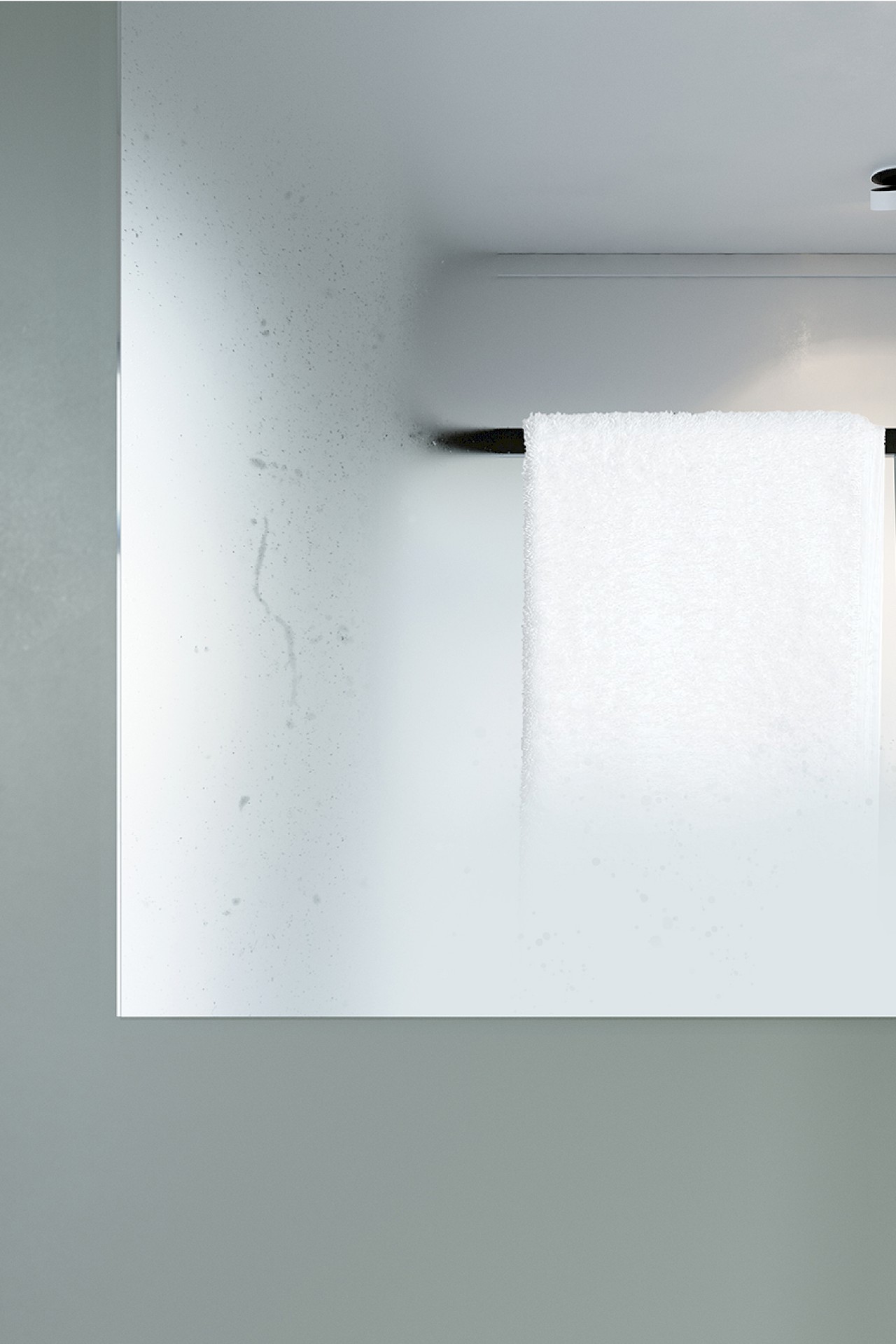 Ce miroir reste parfaitement fonctionnel, même lorsque votre salle de bains est envahie par la vapeur. Un tapis chauffant intelligent veille à ce que le miroir soit toujours clair et prêt à l’emploi.