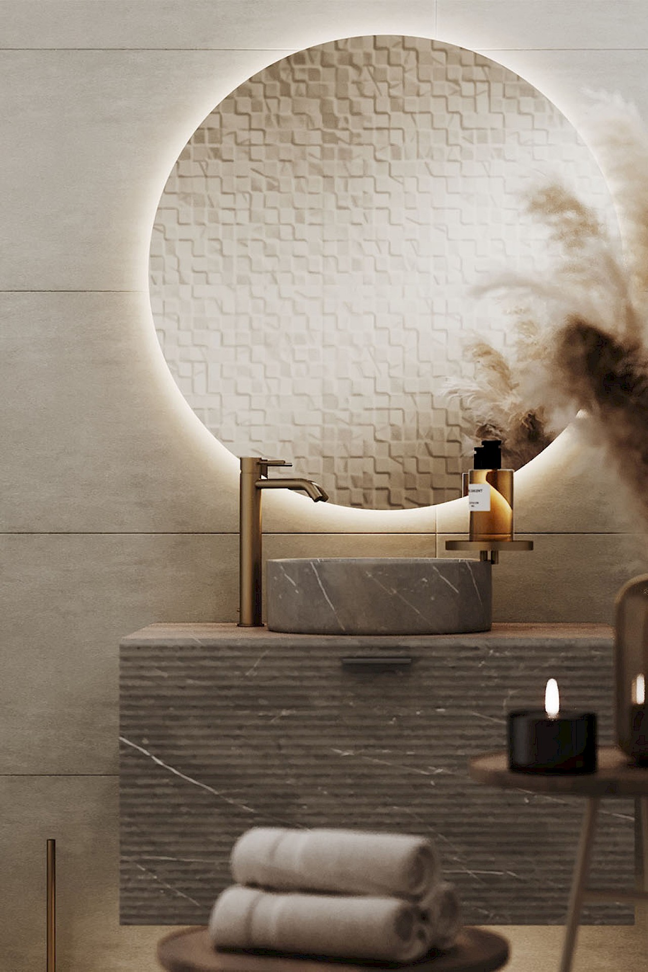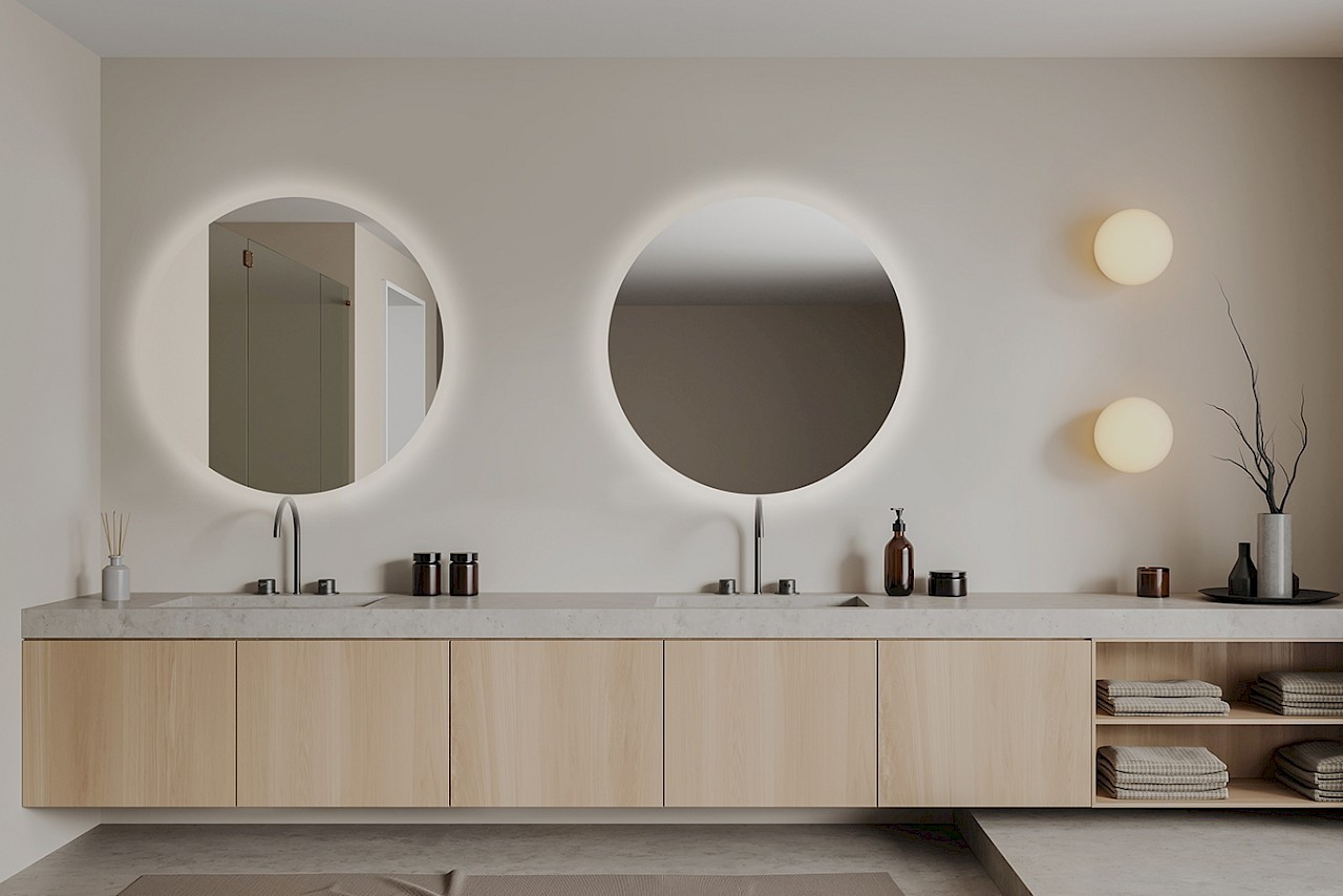 La forme ronde et la taille parfaite du miroir en rendent un passe-partout pour la salle de bains ou un dressing. L’éclairage indirect ne se contente pas d’illuminer votre reflet, il constitue également une source de lumière d’ambiance élégante et utile pour la pièce. Ce miroir reste parfaitement fonctionnel, même lorsque votre salle de bains est envahie par la vapeur. Un tapis chauffant intelligent veille à ce que le miroir soit toujours clair et prêt à l’emploi.