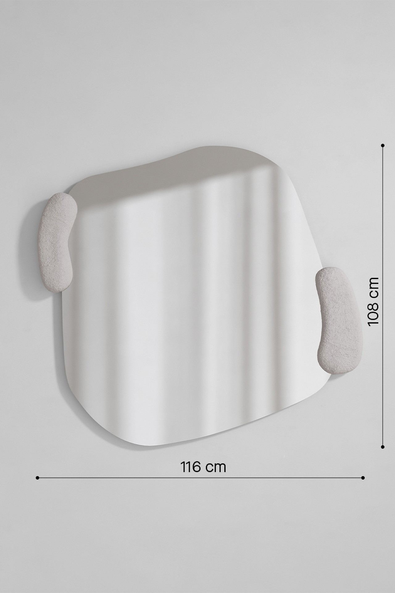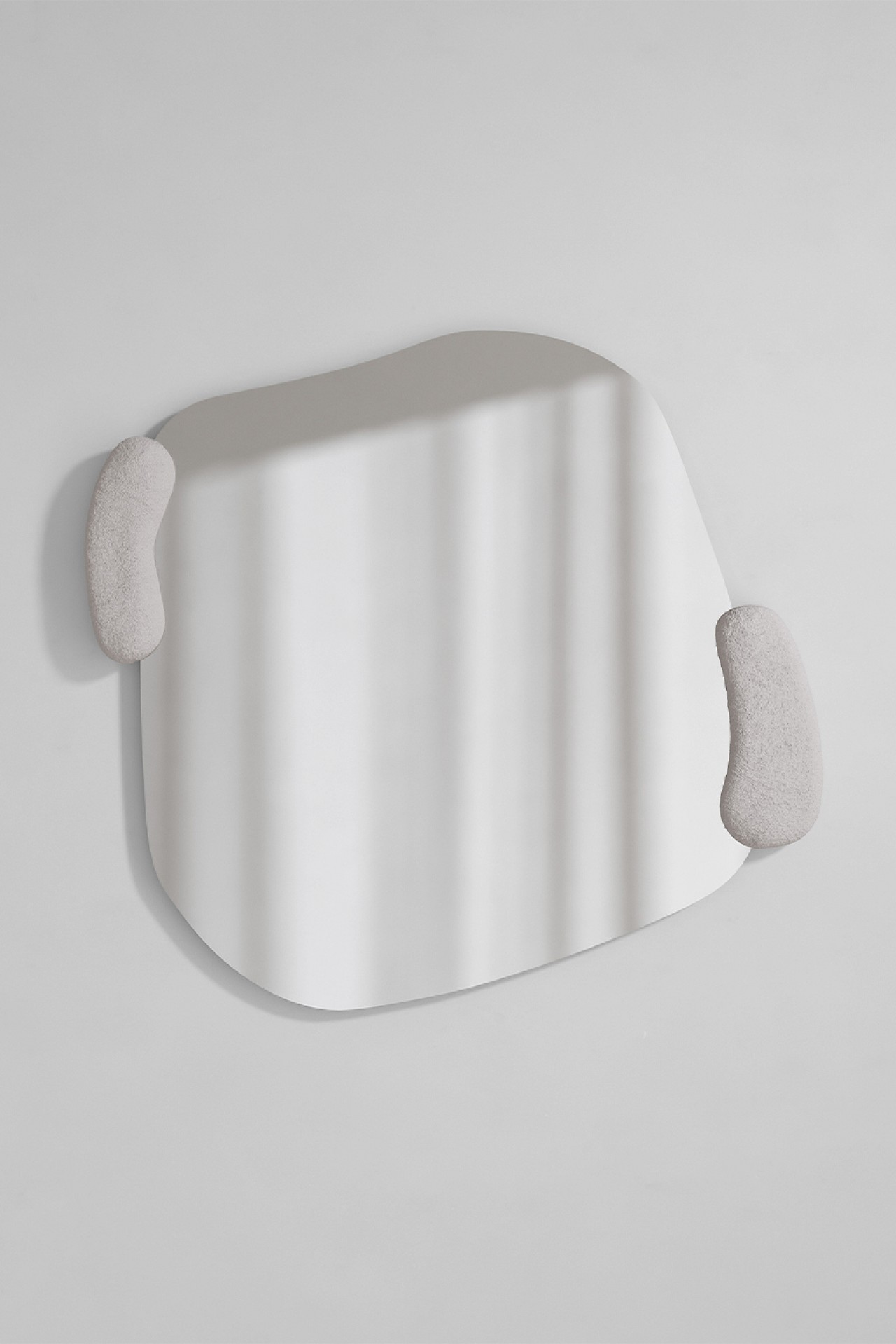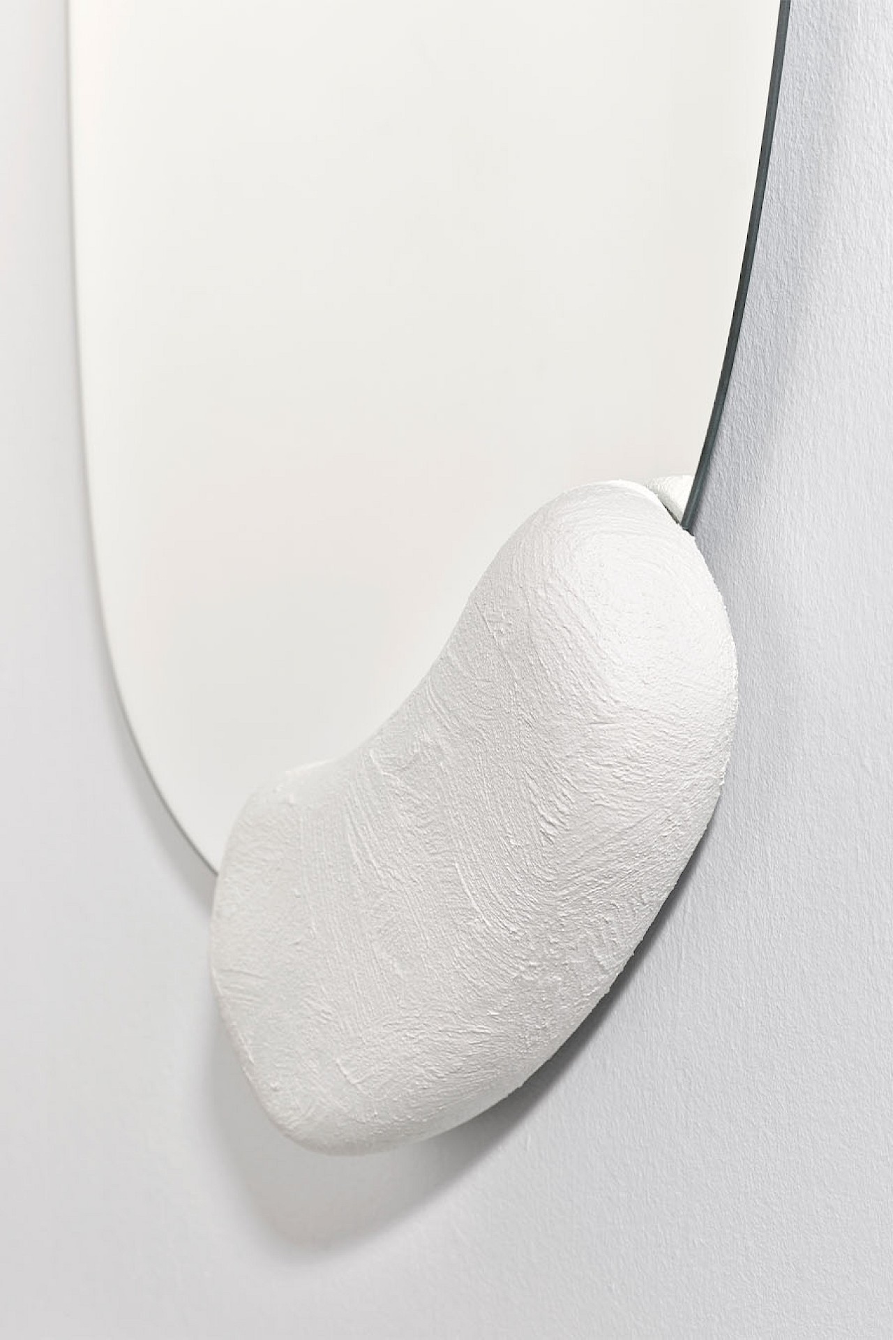 Le contraste entre le miroir lisse et les surfaces texturées apporte une sensation de richesse, de profondeur et d’expressivité, vous invitant à toucher et à admirer la forme et les textures du miroir.