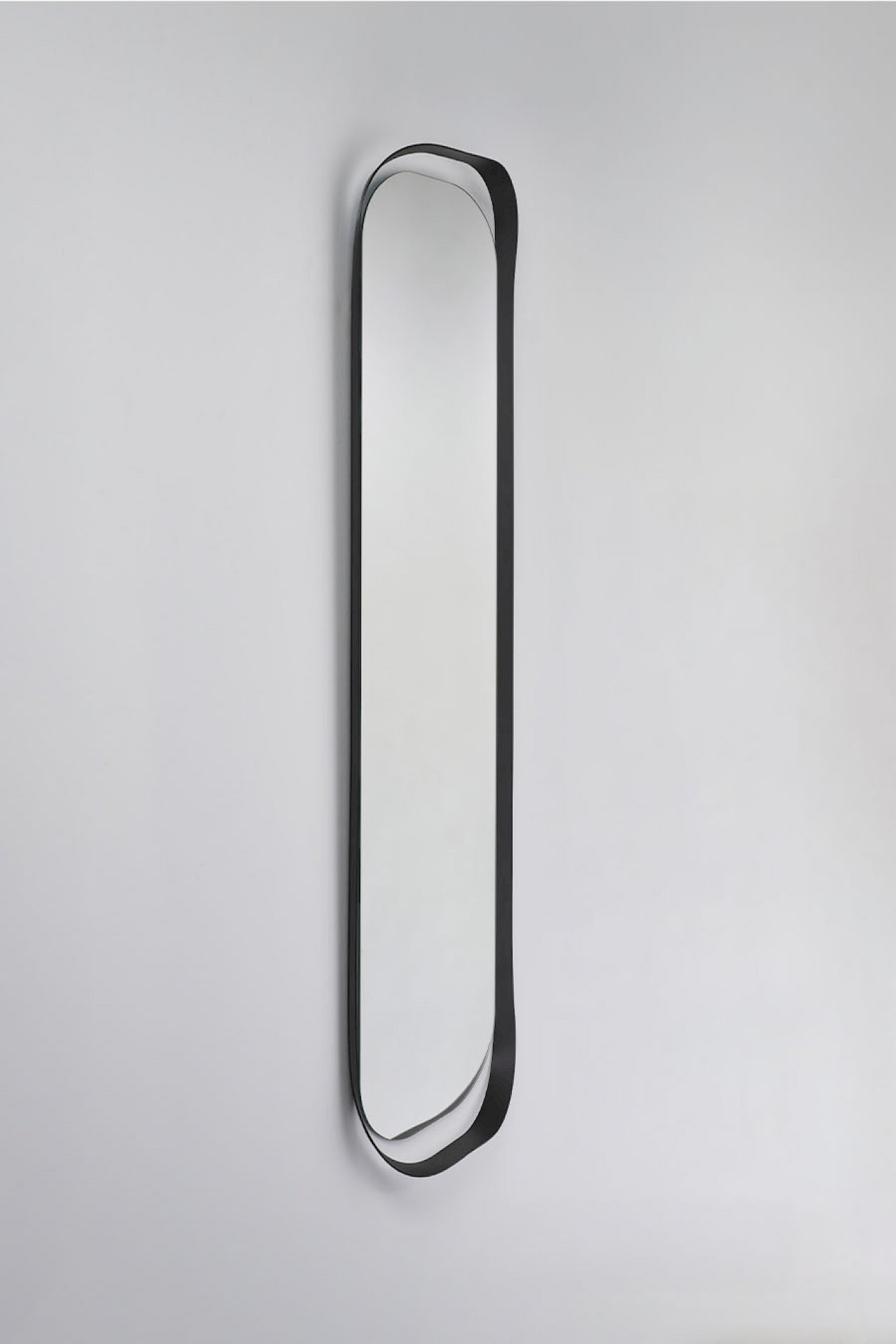 Le processus de conception a commencé avec une feuille de papier. En pliant les côtés, une forme tridimensionnelle raffinée a été créée. La traduction en miroir séduit par sa beauté : le cadre dessine une courbe sculpturale qui embrasse harmonieusement le miroir ovale. Le verre miroir subtilement encadré ajoute une élégance discrète à n’importe quel intérieur, fusionnant forme et fonction avec un charme poétique.