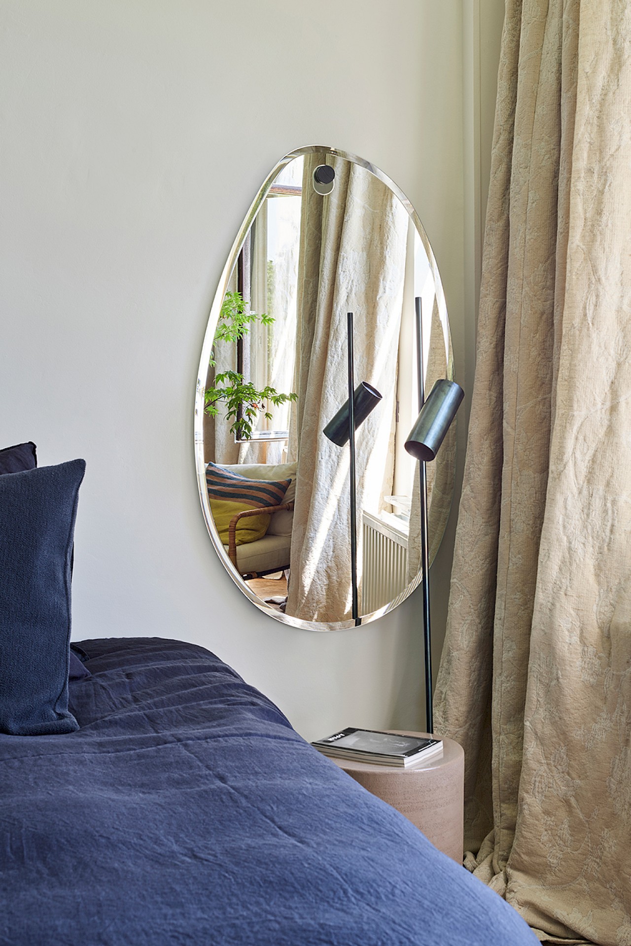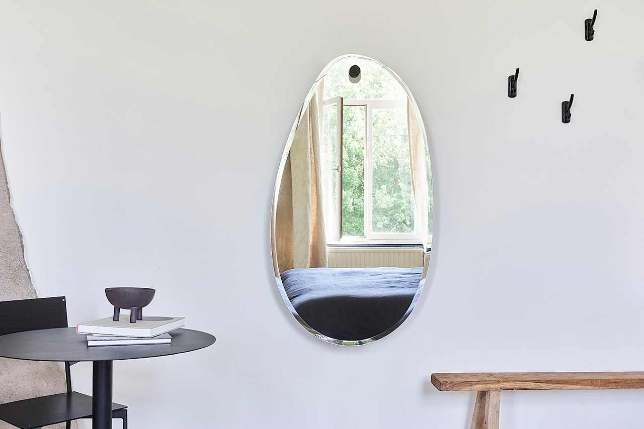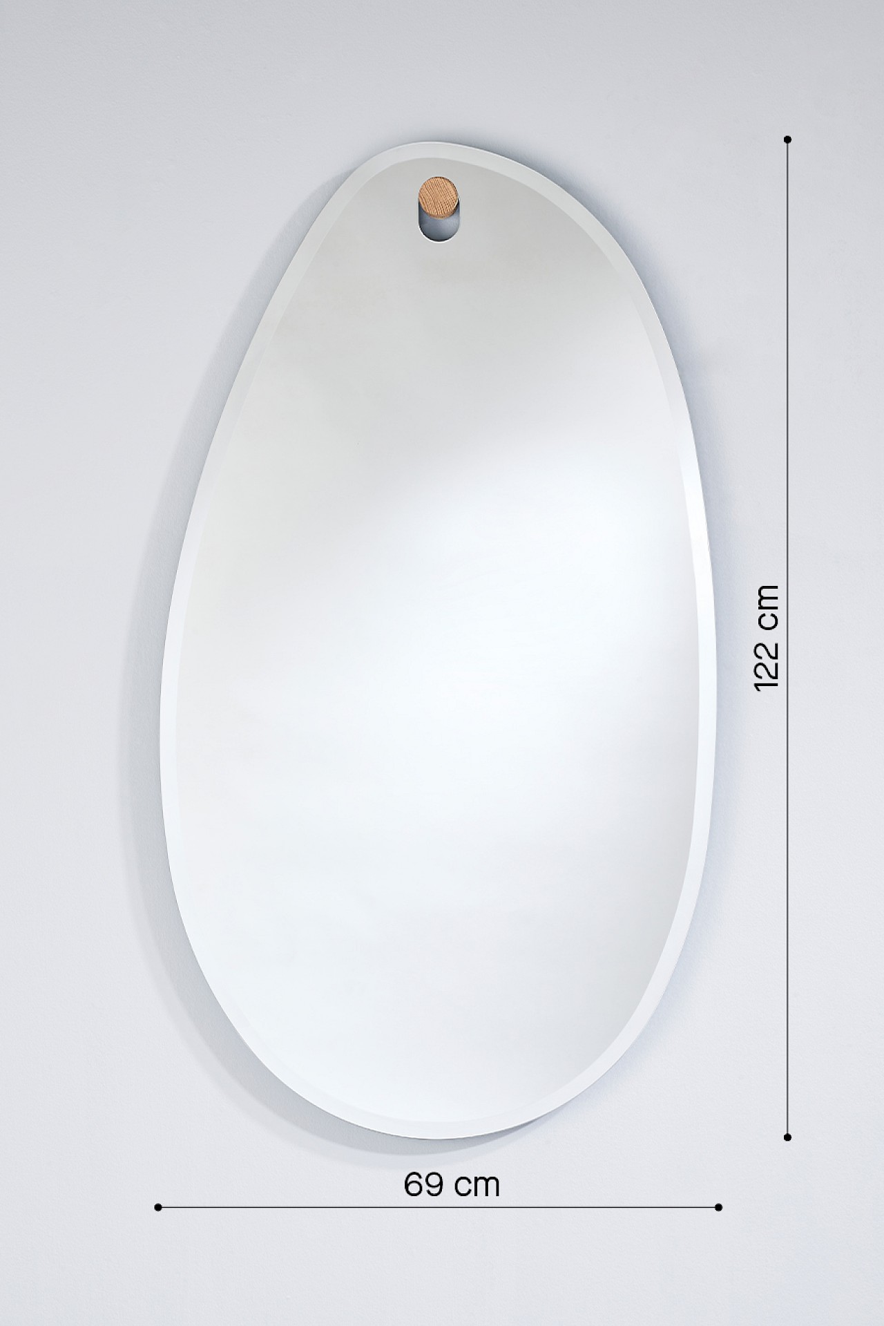 LAGO est un miroir gracieux, grâce à sa forme organique et son biseau raffiné. Une suspension ingénieuse déclinée en chêne massif noir et naturel fait encore plus ressortir ce miroir.