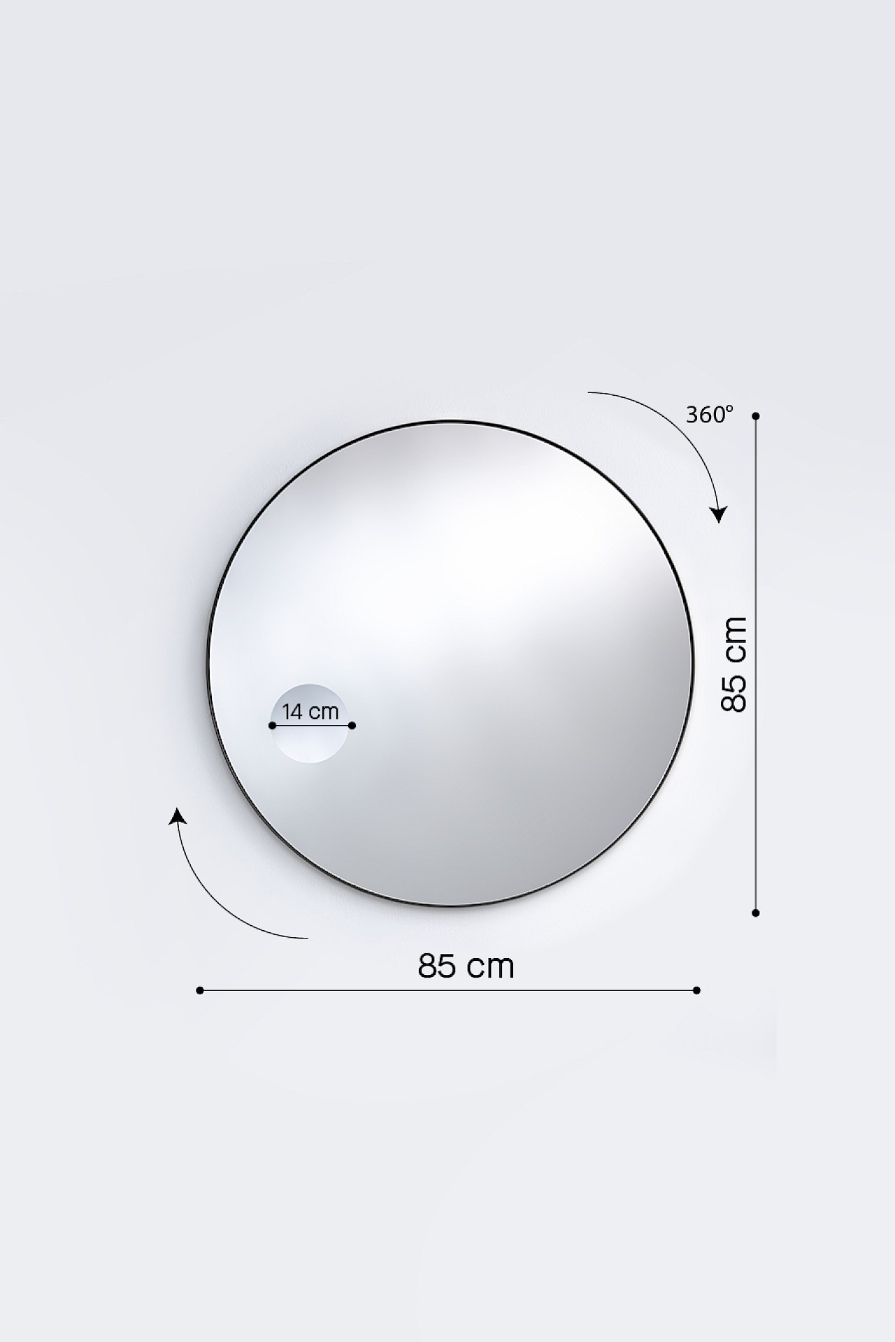 mirrored glass + magnifying mirror + black metal frame + rotating suspension