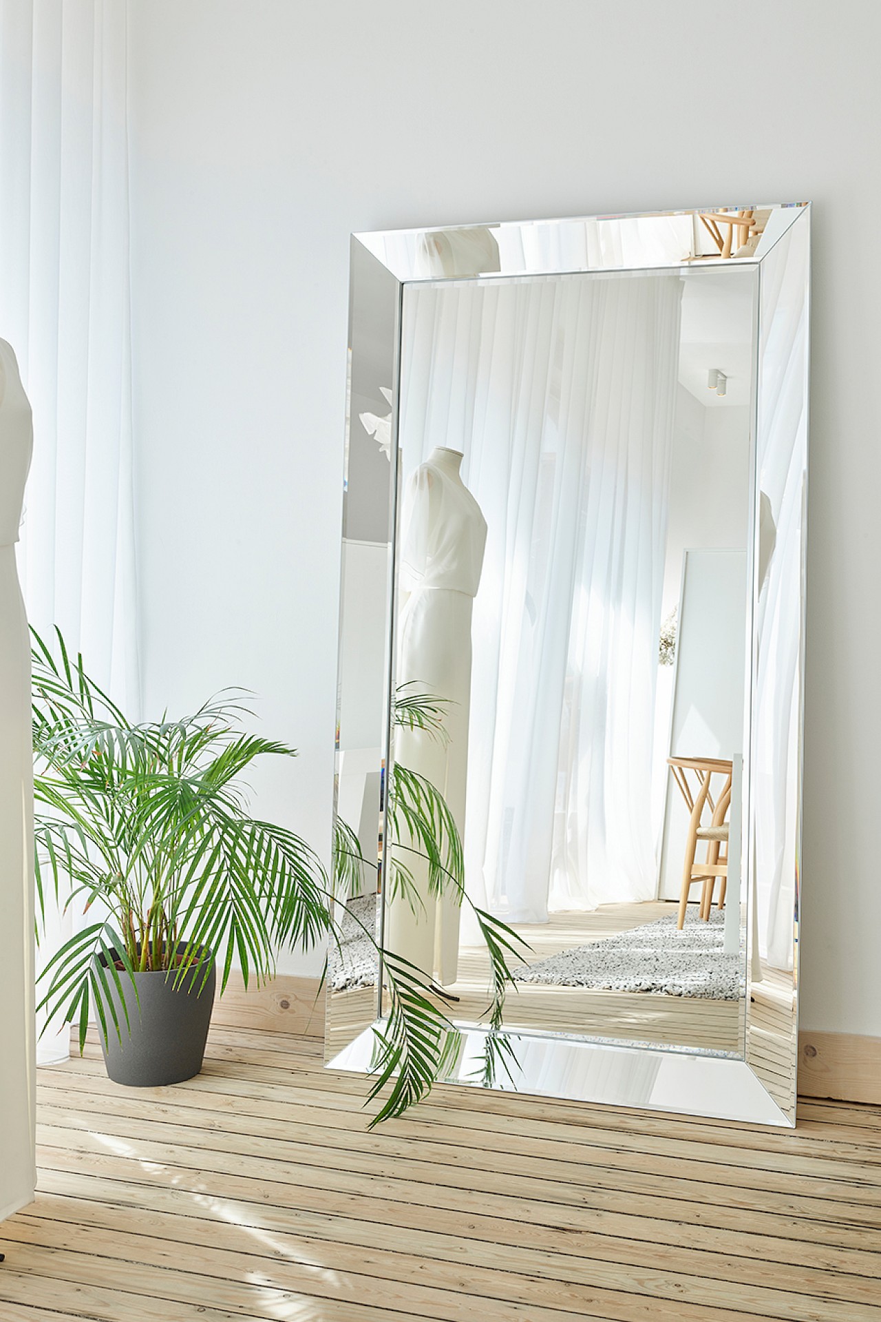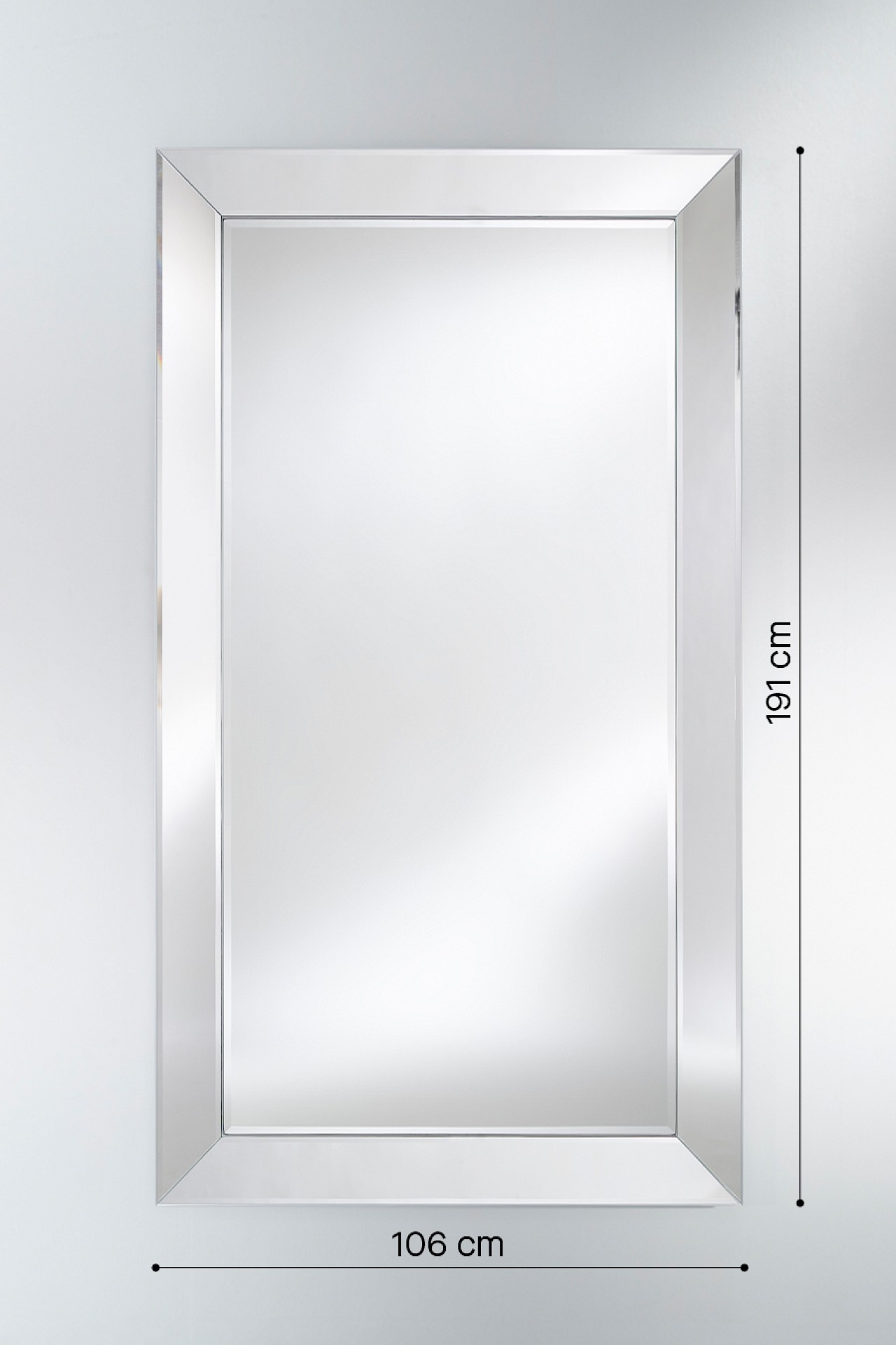 The mirror “INTEGRO” is the most iconic mirror of all collections of Deknudt Mirrors. In a grey lacquered PU-”shell”, 5 very finely finished mirror pieces are laid out in the form of a frame: 4 narrower pieces with a facet on all sides that is supposed to represent the real mirror. The sides incline slightly forward, which gives the whole more allure and appearance. This mirror fits in any interior due to the universality of its design and its neutral colour.