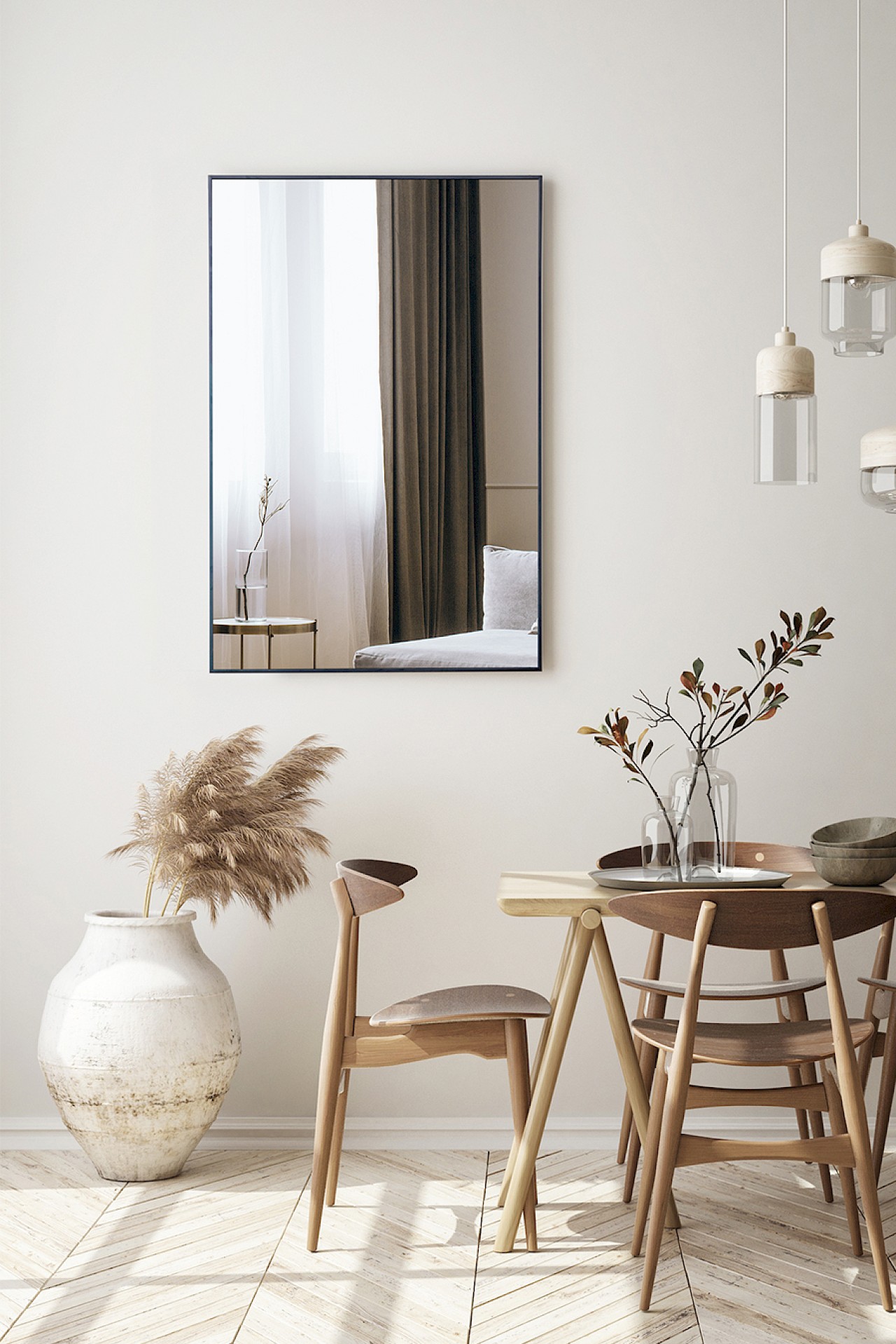 mirrored glass + black metal frame