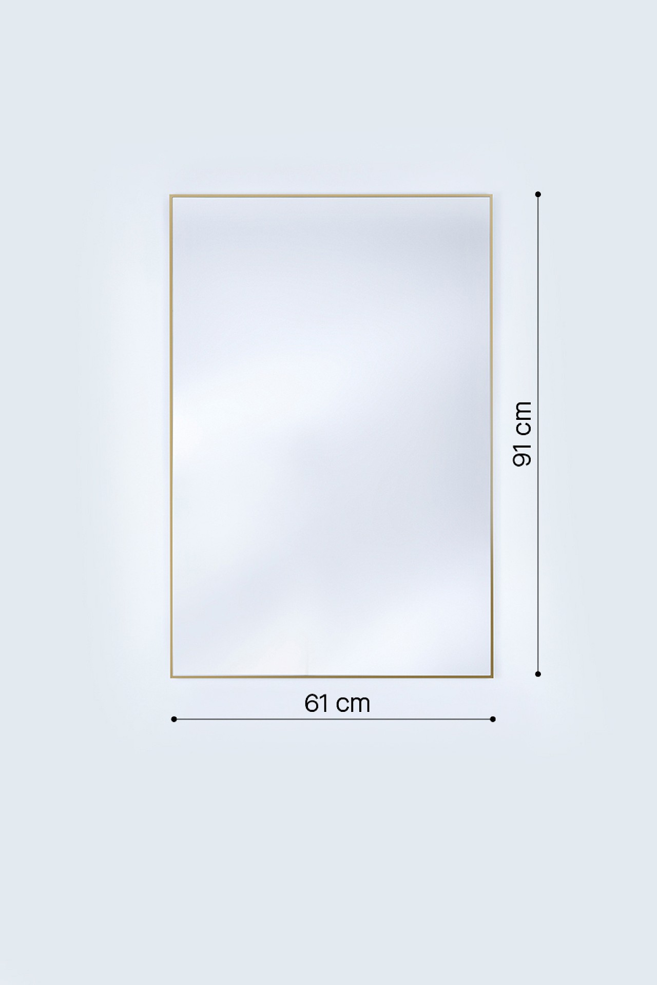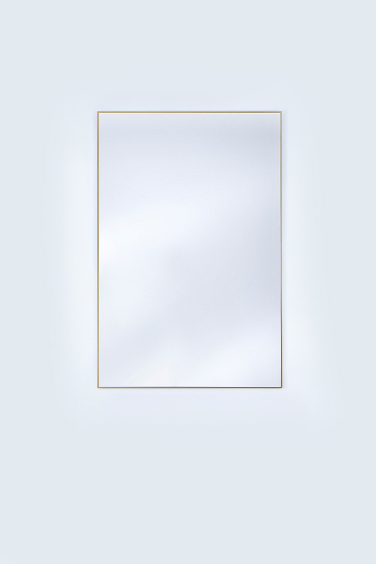 LUCKA GOLD SMALL RECTANGLE est un miroir très élégant avec un cadre en aluminium de haute qualité et une finition or mat. Le miroir est légèrement encastré dans le cadre profond et bien protégé tout autour.
