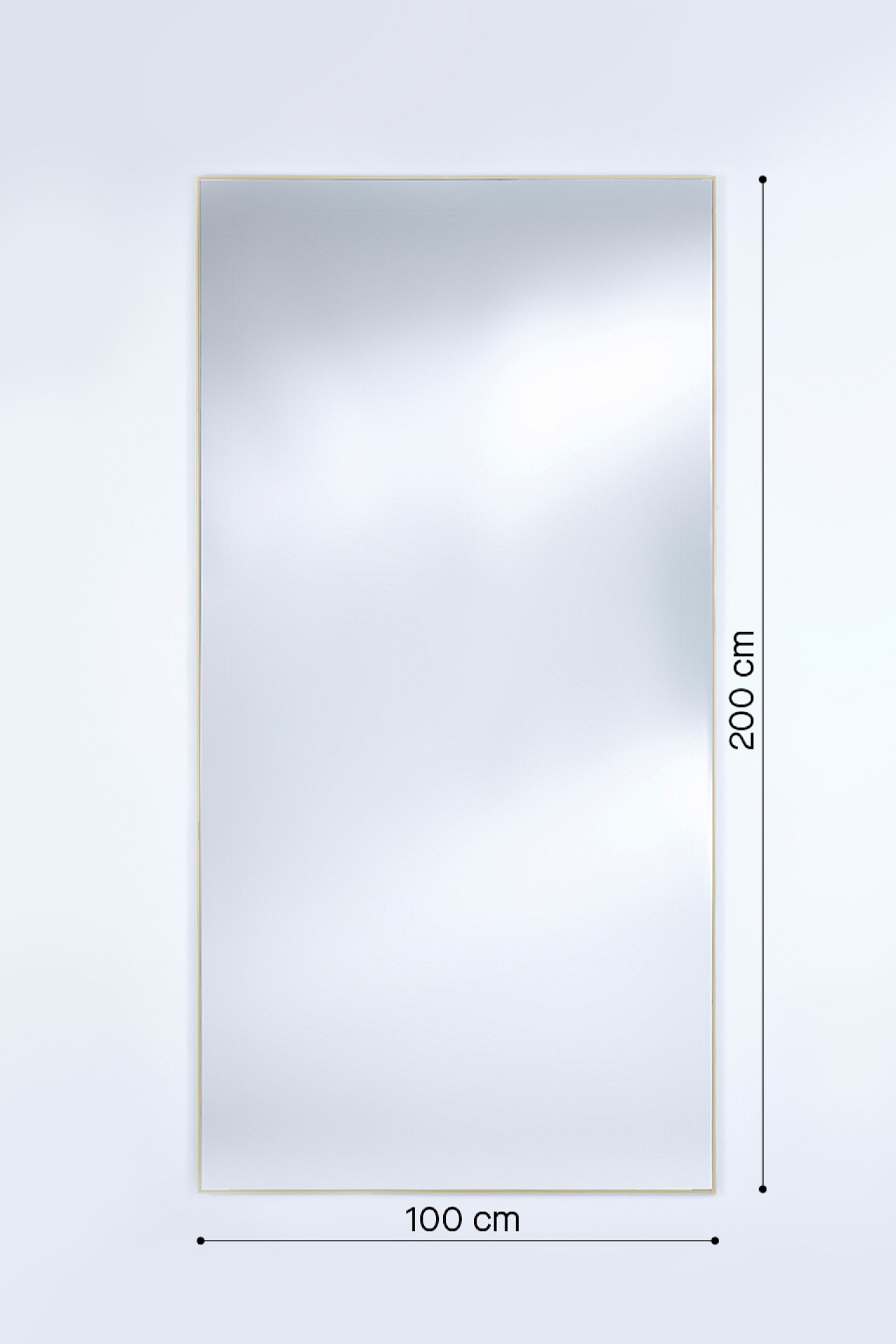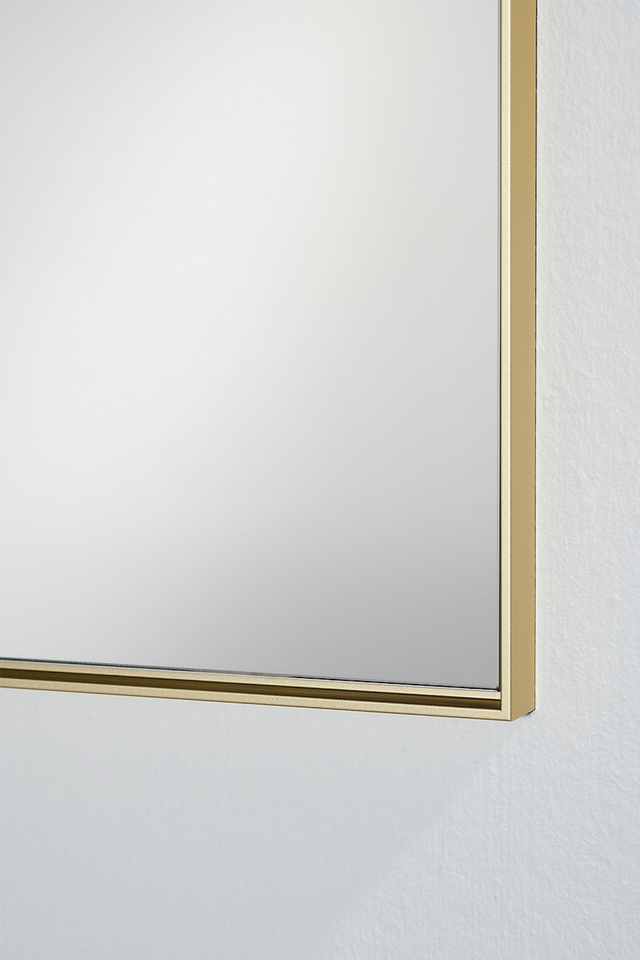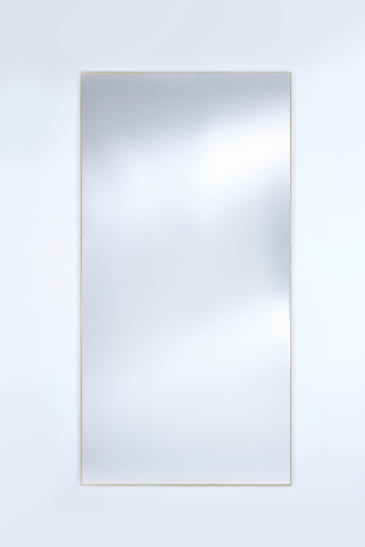 LUCKA GOLD XXL est un miroir immense et néanmoins très élégant avec un cadre en aluminium de haute qualité et une finition or mat. Le miroir est légèrement encastré dans le cadre profond et bien protégé tout autour.