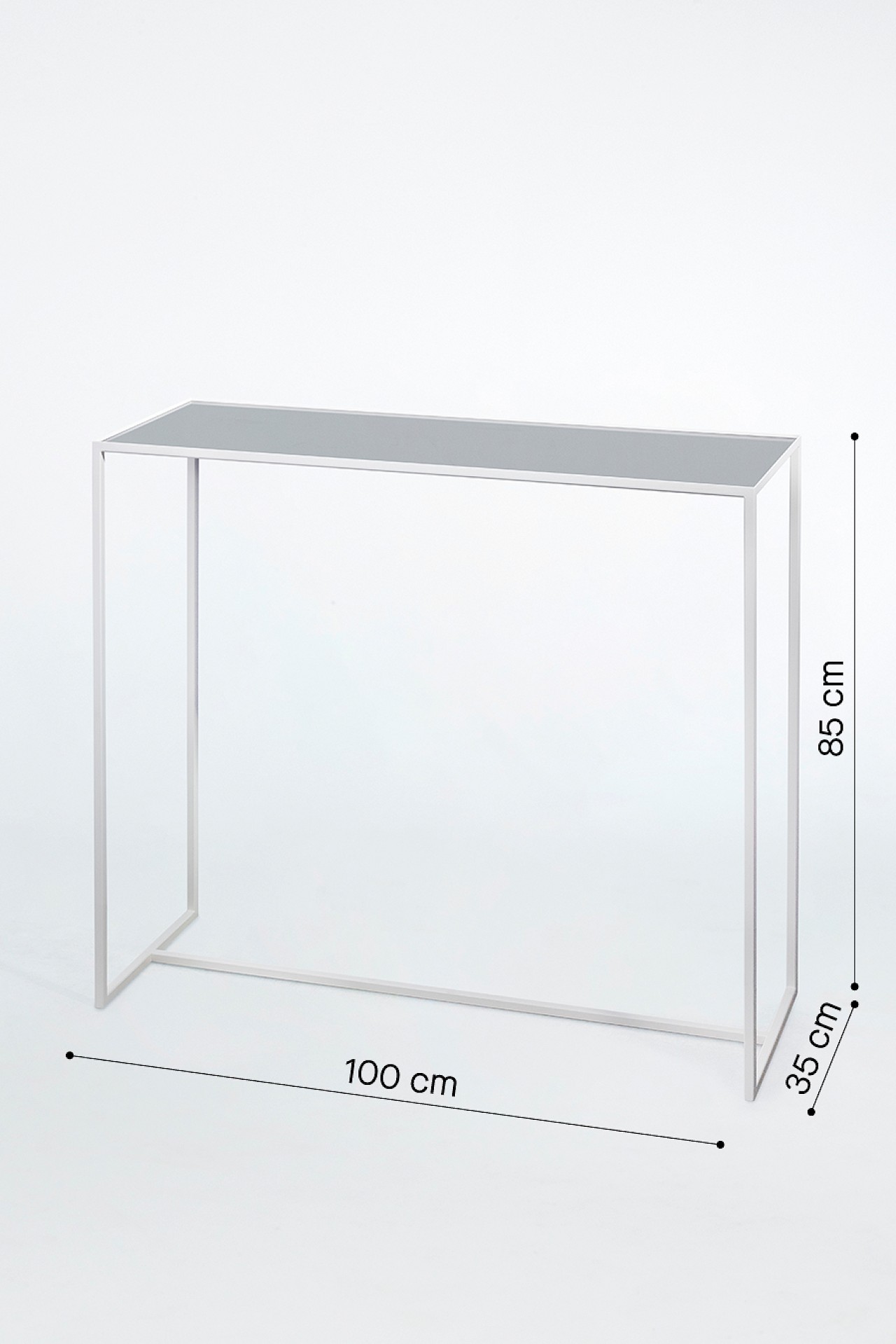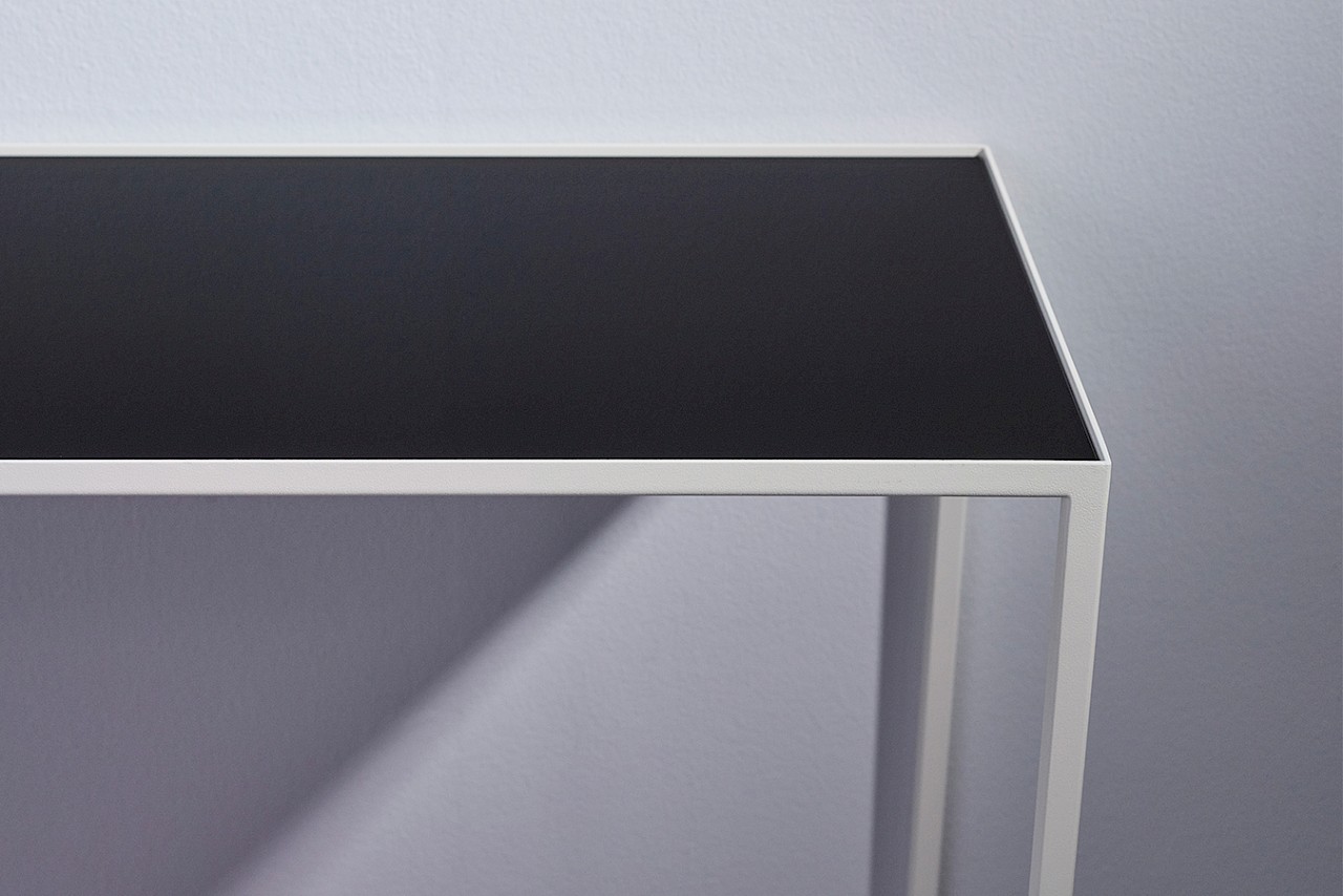 MESA WHITE CONSOLE TABLE est une table console élégante et moderne avec un cadre métallique de couleur blanc. Elle a une caractéristique unique: son miroir double-face réversible. Selon votre humeur et votre goût, vous pouvez tourner le double-face et choisir le verre noir élégant ou le miroir gris fumé chic comme couleur supérieure. Évidemment, nous avons prévu des embouts de pieds de table en caoutchouc pour éviter toute rayure sur votre sol. Mesa est également disponible avec un cadre en métal de couleur noir. En combinaison avec un miroir, cette table console est encore plus étonnante.