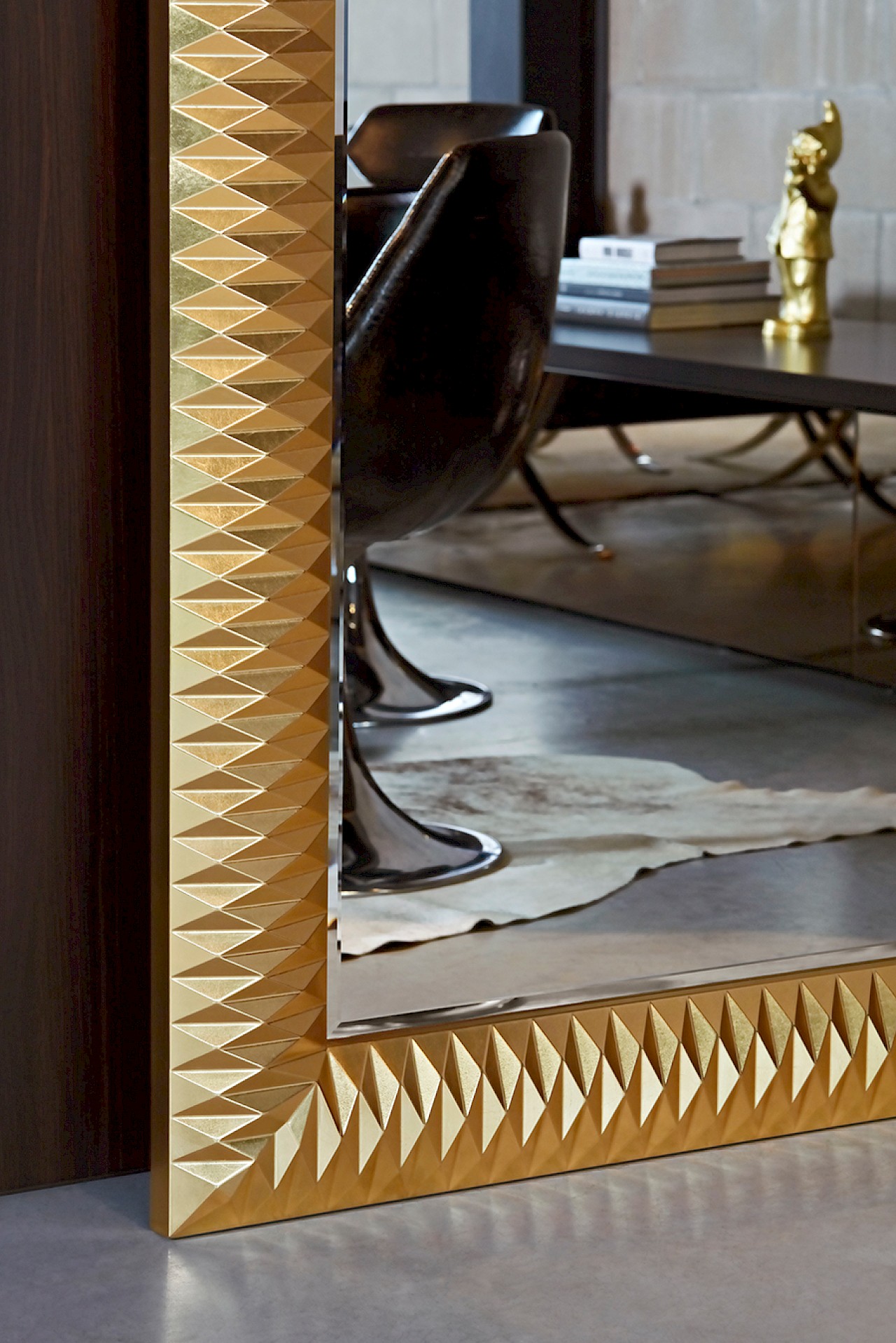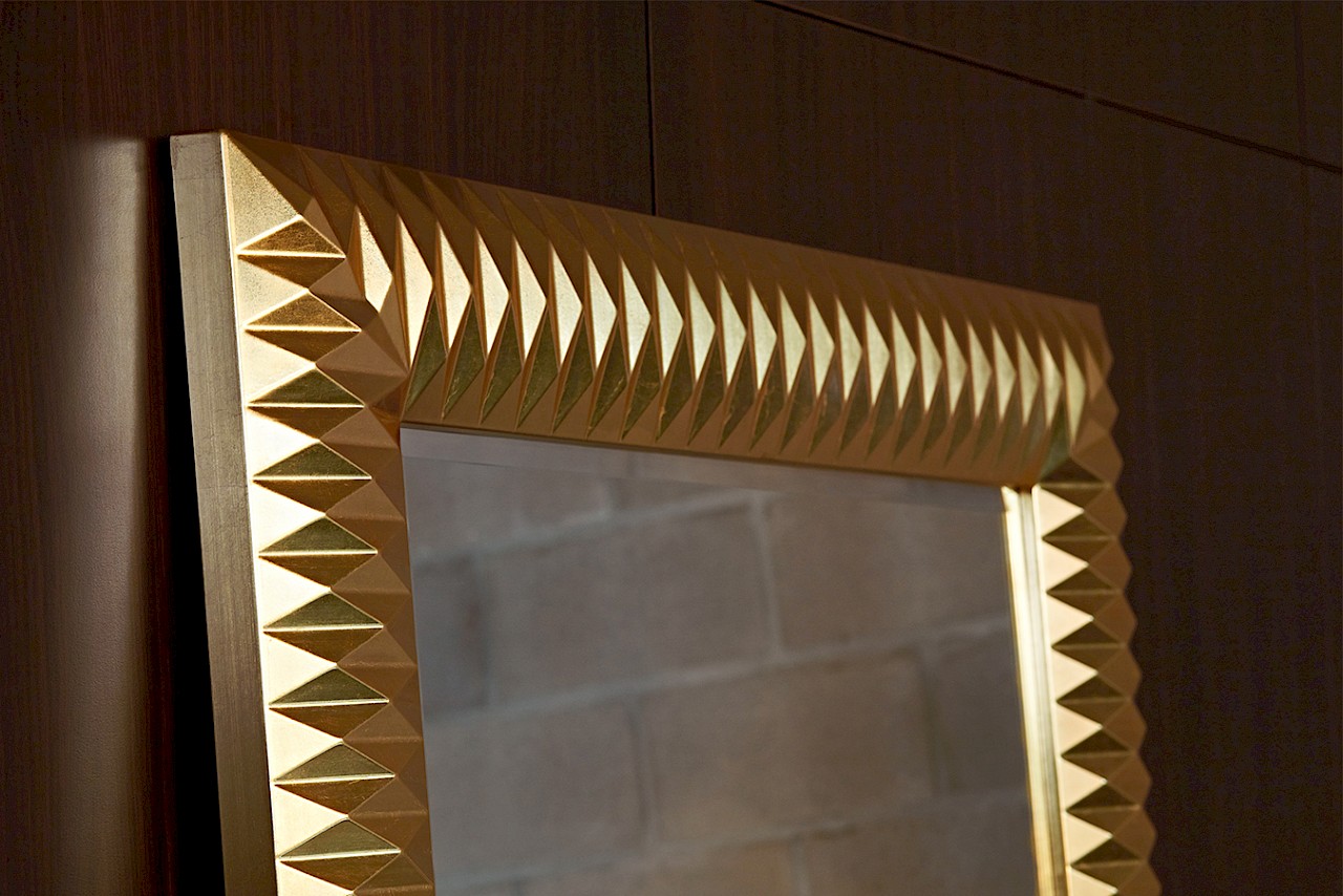 mirrored glass + synthetic frame + hand applied gold metal leaf