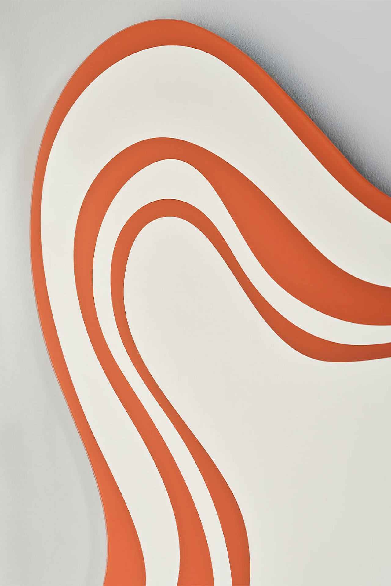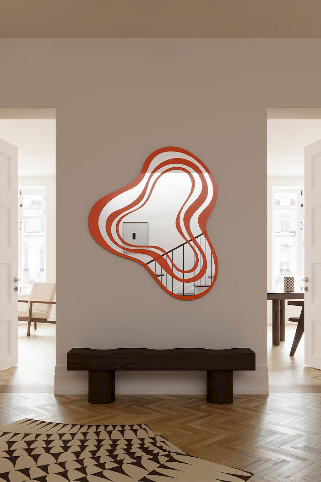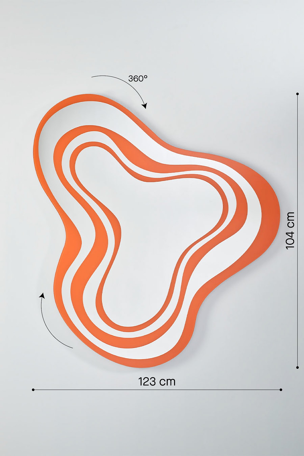 Inspiré par la beauté éphémère des nuages et leur mouvement constant, NIMBUS ORANGE est une fusion poétique de forme et de fonction. Les alternances de bandes argentées et colorées évoquent la fluidité des nuages flottants, produisant un effet visuel rythmique et presque méditatif. Nimbus apporte une touche de surréalisme à l’espace, idéal pour un couloir, une salle de bain ou tout intérieur cherchant fluidité et optimisme.