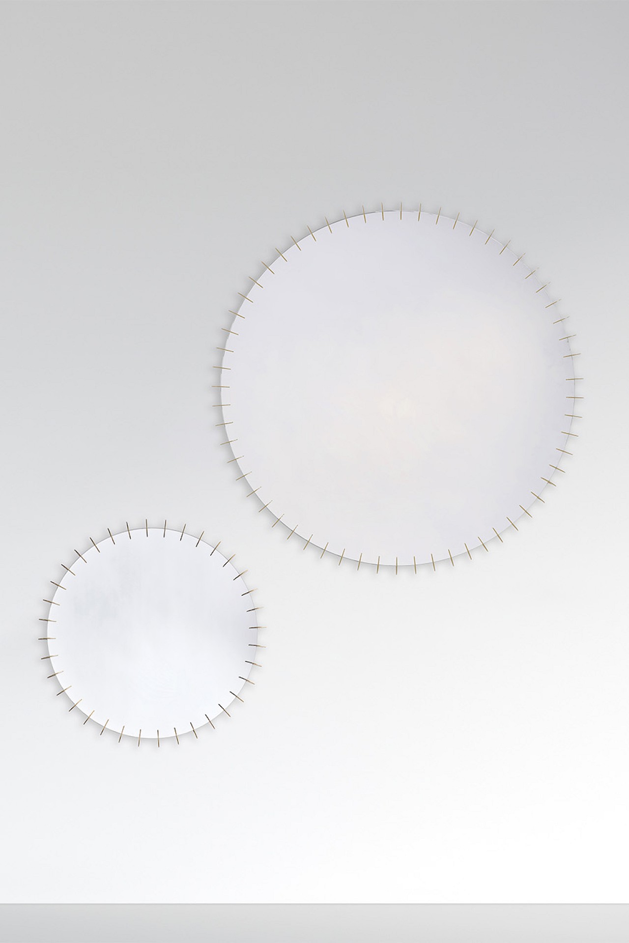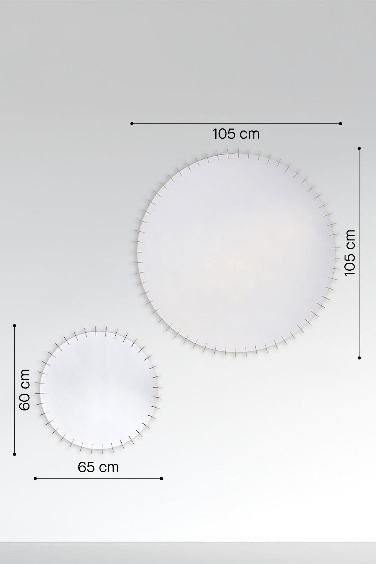 Une gamme infinie de cercles métalliques ornent le bord extérieur de Ray. Liés au miroir rond magnifique, les petits disques semblent se poursuivre dans le reflet, donnant à Ray un effet intrigant, une illusion de continuité sans faille.