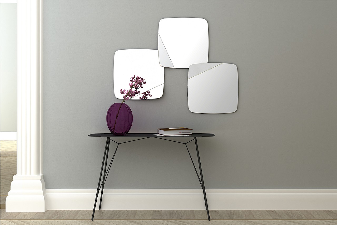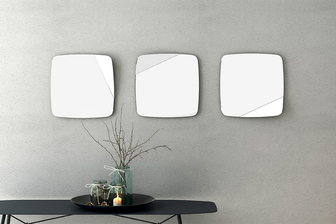 Tilt is a playful mirror that winks at his admirer.The rather small size allows to make compositions that suit the chosen location.The soft organic shape has a bend that creates a surprising reflection, it gives the possibility to the mirrors to overlap.The Tilt mirror has a turning suspension that enables countless positions and combinations. Be creative…