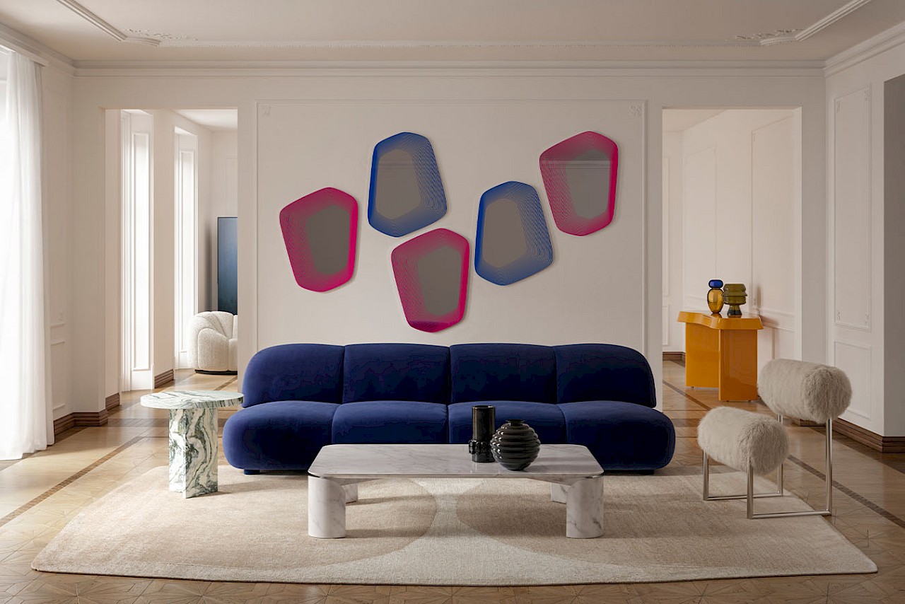 VIBE PINK, le résultat d’une nouvelle coopération avec Karim Rashid, insuffle énergie et formes ludiques à tout intérieur. Il commence comme un simple objet en 2D et se transforme en une création dynamique, sculpturale et immersive. Au centre, la surface reste claire et dégagée : vous devenez le point focal, le calme au cœur de la vibration visuelle.